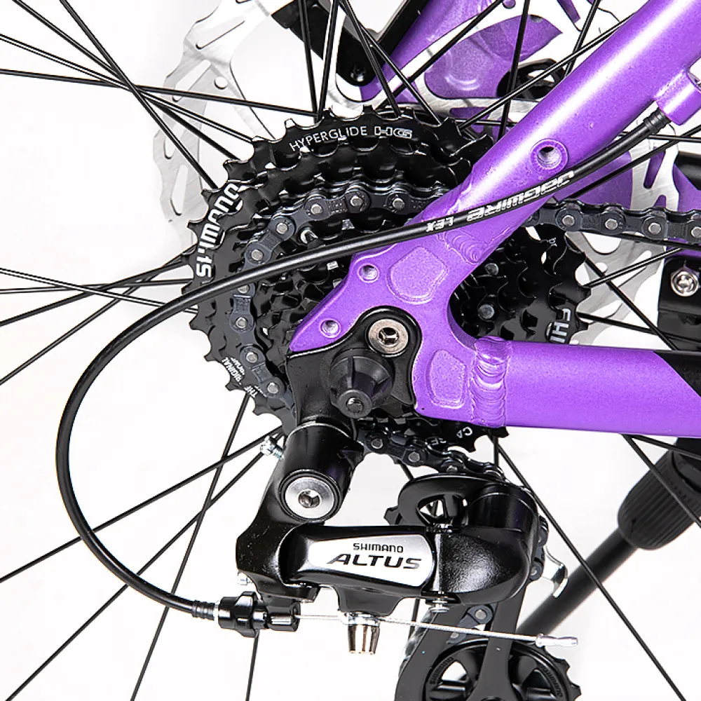 Велосипед Tech Team ELIS 27.5 в фиолетовом цвете с 18-дюймовой стальной рамой рассчитан на подростков и женщин с параметрами роста 165-180 см. Плавный изгиб стальной рамы удобный, комфортный для длительных прогулок на свежем воздухе в пределах города, а также на лесных тропинках. Купить технику по лучшей цене, на личной опыте убедиться в комфорте передвижения предлагает наш интернет-магазин.